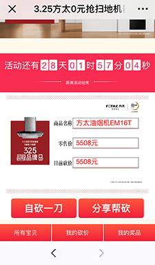 ? ? ?2、每個用戶可以自砍一刀,然后分享給小伙伴幫砍,每個好友只能幫砍一次;