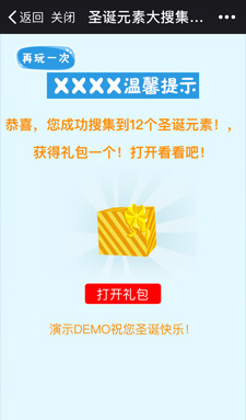 除了以上此款游戲,圣誕節(jié)主題的微信營(yíng)銷游戲還有:圣誕酷跑、圣誕抓娃娃、圣誕節(jié)集禮盒、圣誕脫光光等游戲模版,如果滿足您的需求,可以直接租用模版,如果有其它訂制需求,歡迎提交需求給我們,進(jìn)行進(jìn)一步溝通和開發(fā)。