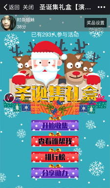 圣誕節(jié)微信助力游戲,游戲中圣誕老人飛行過程中,收集空中的禮盒,并且集合“圣”、“誕”、“快”、“樂”四個(gè)水晶球會(huì)讓圣誕老人能量加倍。助力游戲起到增加粉絲量的效果。