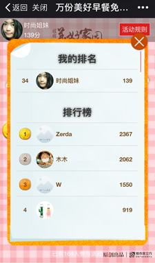 1、每個用戶活動期間每天可以有5次分早餐機(jī)會,取最高分;
