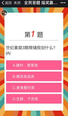 2、未全答對可將游戲分享到朋友圈,即可再次獲得3次答題機(jī)會(huì),全答對題目即可開始搖獎(jiǎng);