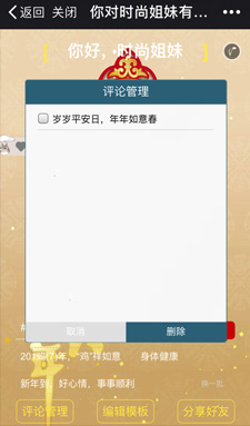 進(jìn)入游戲——評(píng)論管理——編輯模版——分享好友