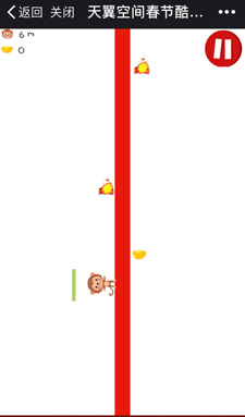 進入游戲——奔跑吧,猴年——左右手操作,切換跳躍——限制時間內(nèi),收集金元寶越多,跑得越遠,得分越高——分享好友助力一起玩——查看排行榜和規(guī)則