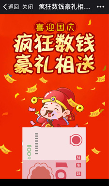 月末獎金、年末獎金、春節(jié)壓歲錢,誰不想數(shù)錢數(shù)到手抽筋。微信游戲迎合用戶的心理,將數(shù)錢游戲與商家品牌結合,在游戲中記住了品牌價值,真正一款花小錢,擴大朋友圈粉絲推廣的小游戲。