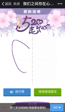 畫心助力游戲在情人節(jié)切實(shí)起到了吸粉和推廣微信公眾號的作用,如果滿足您的需求,可以直接租用模版,如果有其它訂制需求,歡迎提交需求給我們,進(jìn)行進(jìn)一步溝通和開發(fā)。