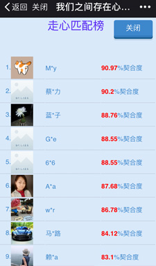 3、活動最終的排行會根據(jù)每位發(fā)起參與者的最高匹配度來排;