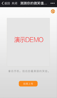 游戲創(chuàng)意點:拍照上傳后可測試微笑值。