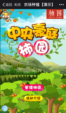? ? ? 進入游戲——管理柿園——播種、施肥、澆水、收獲——排行榜——邀請好友——活動介紹