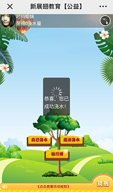 春天我們?nèi)シN樹、播綠、種下希望的種子。游戲中領(lǐng)取一棵樹苗,邀請(qǐng)好友助力澆水,收獲豪禮。游戲推廣效果顯著,以小成本,增長(zhǎng)了大數(shù)量的粉絲。