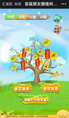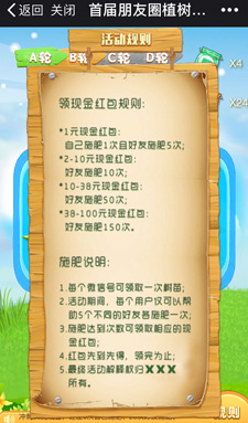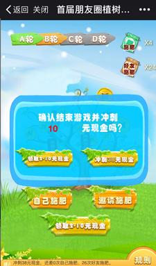 進(jìn)入游戲——自己施肥——邀請(qǐng)好友助力施肥——A/B/C/D輪抽紅包——查看規(guī)則