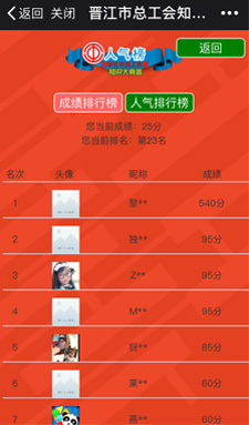 3、最終按照自己的最高分和好友助力的成績累計,作為總得分進行排名;