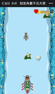 游戲創(chuàng)意點(diǎn):娛樂性強(qiáng)的h5小游戲,端午節(jié)劃龍舟,鼓勵(lì)分享擴(kuò)散。