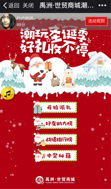 進(jìn)入游戲——開始分享圣誕禮物——手指連續(xù)向上迅速滑動,速度越快,拋出等早餐越多——限制時間內(nèi),投中的物品越多,得分越高——分享好友助力一起玩——查看排行榜和規(guī)則