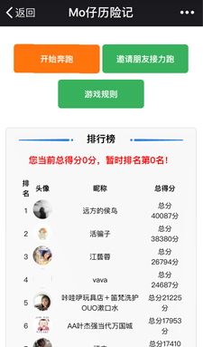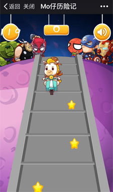 進(jìn)入游戲——開(kāi)始奔跑——左右移動(dòng)mo仔沖向終點(diǎn)——小星星+2分,得分券+5分,障礙物減少游戲時(shí)間——分享好友助力一起玩——查看排行榜和規(guī)則