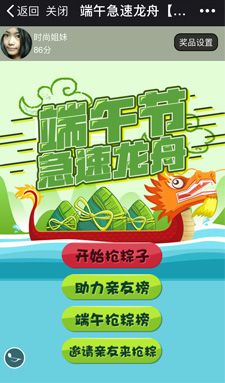 游戲創(chuàng)意點:助力賽龍舟,品牌植入,比收集粽子多少。