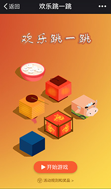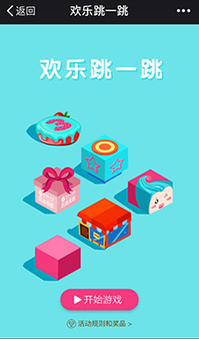 跳一跳小游戲的熱度高漲,根據(jù)跳一跳改版的歡樂跳一跳,是一個(gè)營銷性活動(dòng)。這是一款可以植入廣告的跳一跳活動(dòng),達(dá)到分?jǐn)?shù)可領(lǐng)取紅包?;顒?dòng)推出后,實(shí)現(xiàn)幾千幾萬粉絲參與,營銷效果非常顯著。