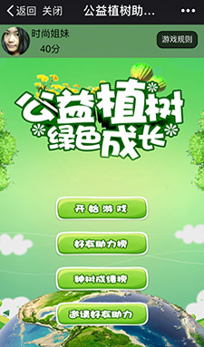 游戲創(chuàng)意點(diǎn):公益植樹(shù),邀請(qǐng)好友助力,收獲豪禮,助力游戲增粉效果好。
