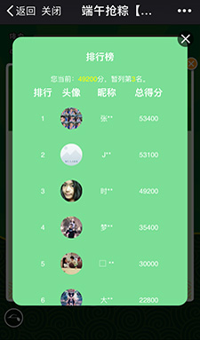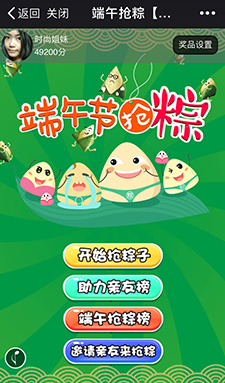 ? ? ? 游戲創(chuàng)意點:助力搶粽子,品牌植入,比搶粽子多少。