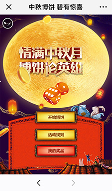 微信營(yíng)銷游戲——中秋博餅基礎(chǔ)版 是經(jīng)典款微信公眾號(hào)推廣游戲,可以直接租用模版,如果有其它訂制需求,歡迎提交需求給我們,進(jìn)行進(jìn)一步溝通和開(kāi)發(fā)。