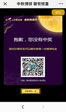 2)若未中獎(jiǎng),將本活動(dòng)轉(zhuǎn)發(fā)至微信朋友圈,即可額外獲得線上博餅一次