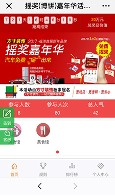 進(jìn)入游戲——簽到積分——美妝館、美食館——選擇房間進(jìn)入博餅——x次擲骰子機(jī)會(huì)——分享朋友圈或者好友,增加X博餅機(jī)會(huì)——查看規(guī)則、排行榜、個(gè)人中心