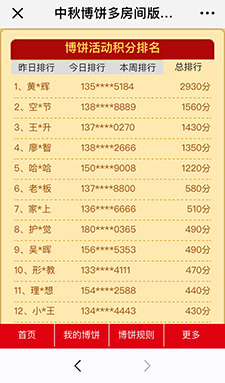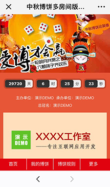 微信營(yíng)銷游戲——中秋博餅多包廂 是經(jīng)典款微信公眾號(hào)推廣游戲,可以直接租用模版,如果有其它訂制需求,歡迎提交需求給我們,進(jìn)行進(jìn)一步溝通和開(kāi)發(fā)。