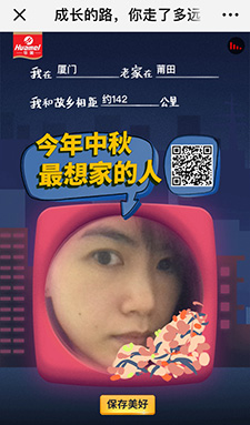 游戲創(chuàng)意點:喜慶思鄉(xiāng)的節(jié)日,海報生成,鼓勵分享交友。