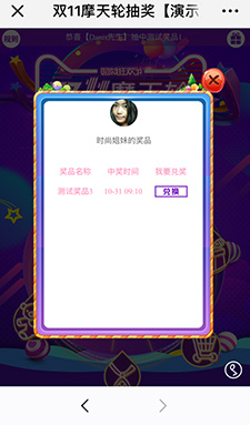1、活動期間,點擊摩天輪上的禮品圖,抽取獎品;