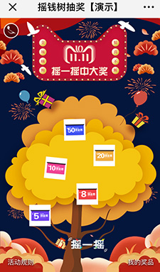 搖錢樹(shù)抽獎(jiǎng)活動(dòng)的微信營(yíng)銷游戲模版如果滿足您的需求,可以直接租用模版,如果有其它訂制需求,歡迎提交需求給我們,進(jìn)行進(jìn)一步溝通和開(kāi)發(fā)。