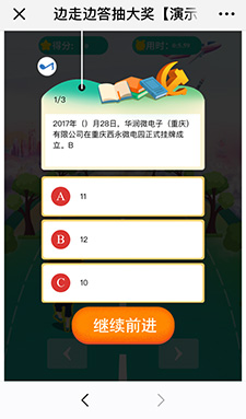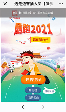 ? ? ? 酷跑答題,遇到障礙物進(jìn)行前行,遇到書籍進(jìn)入答題,達(dá)到條件可以進(jìn)行大轉(zhuǎn)盤抽獎,界面簡約大氣,游戲共性強,是值得推薦的一款各行業(yè)的答題游戲,可以達(dá)到宣傳增粉的目的。活動時間20天,頁面訪問量達(dá)到上萬,獨立用戶達(dá)到上萬。
