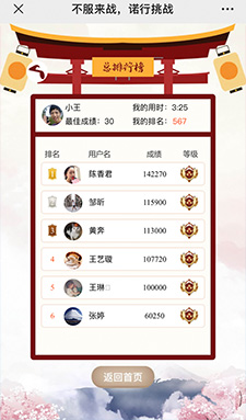? ?3、排行榜顯示答題用時和成績,有每日排行榜和總排行榜?