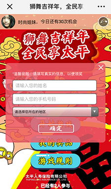 ? ? ???新年游戲有很多款,如果滿足您的需求,可以直接租用模版,如果有其它訂制需求,歡迎提交需求給我們,進(jìn)行進(jìn)一步溝通和開(kāi)發(fā)。