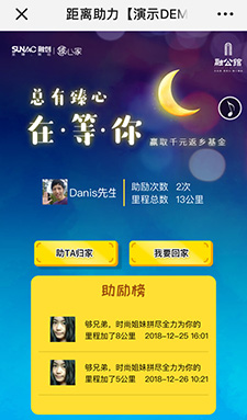 ? ? ?2、將個(gè)人專屬里程頁(yè)面分享至朋友圈,邀請(qǐng)好友助你歸家;
