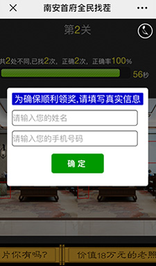 游戲創(chuàng)意點:完成找不同闖關(guān),還可以抽大獎。
