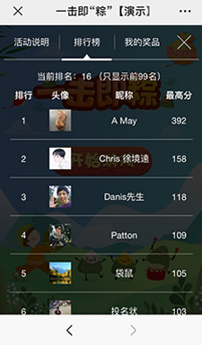 4、排行榜取活動(dòng)期間玩的最高分,可以根據(jù)排行榜發(fā)獎(jiǎng)品。