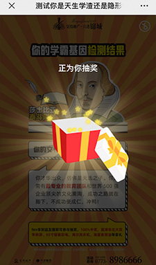 答題測試抽獎(jiǎng),答題后隨機(jī)出結(jié)果頁,分享朋友或者朋友圈后可以進(jìn)行抽獎(jiǎng)。測試答題推廣,品牌植入。