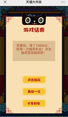 ? ? ? 游戲創(chuàng)意點:天貓大作戰(zhàn)為雙11朋友圈活動增粉,玩法更樂趣。