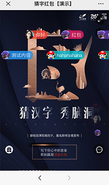 看圖猜字抽紅包,有彈幕機(jī)制,實(shí)現(xiàn)廣泛傳播的目的。