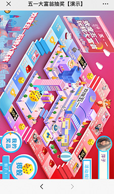 微信五一玩轉(zhuǎn)大富翁是新穎的朋友助力小游戲,界面美觀大方,可植入商家廣告信息。大富翁抽獎(jiǎng)助力玩法不僅提升粉絲的互動(dòng)性,還能獲得大量的粉絲轉(zhuǎn)化。
