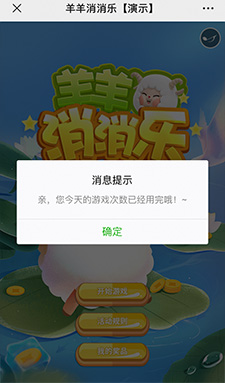 微信朋友圈羊羊消消樂升級版,闖關(guān)成功可抽獎,實(shí)現(xiàn)了微信朋友圈裂變營銷目的。