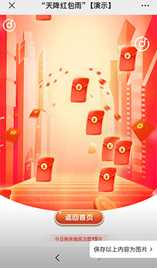 3、營銷點(diǎn):玩紅包雨活動,直接領(lǐng)取紅包,活動火爆朋友圈;