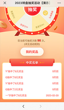 進入游戲——活動規(guī)則——大轉(zhuǎn)盤抽獎——抽獎品——分享好友增加次數(shù)——查看我的獎品——領(lǐng)取獎品——核銷碼