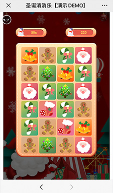 2、屏幕上會出現(xiàn)圣誕節(jié)的元素,將元素換位下相同的元素可消除獲得分數(shù);