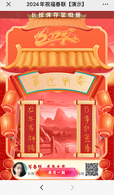 ? ? ?2、生成春聯(lián),長(zhǎng)按頁(yè)面,保存祝福圖片或分享給好友;