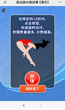 2、每個人每天有5次跳水機會,首次分享朋友圈可額外獲得一次機會