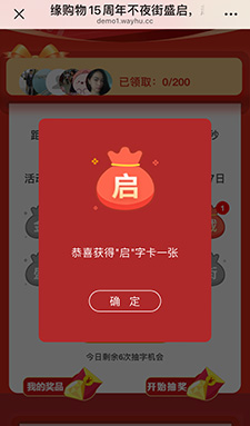 1、集齊x字可獲得1次抽獎機(jī)會,首次集齊必中;
