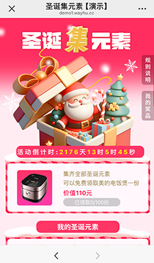 4、集齊9種圣誕元素圖卡即可領(lǐng)取獎(jiǎng)品;