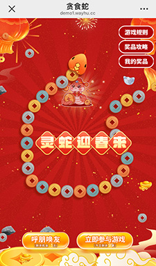 “玩小游戲,過靈蛇年”,很流暢的游戲,達到分數(shù)就有抽獎機會,吸引更多目標受眾關注的最佳方式。趣味互動h5,巧妙融入品牌及產品的宣傳。