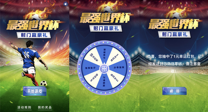 世界杯來(lái)了,射門達(dá)到分?jǐn)?shù)可大轉(zhuǎn)盤(pán)抽獎(jiǎng)實(shí)物或紅包
