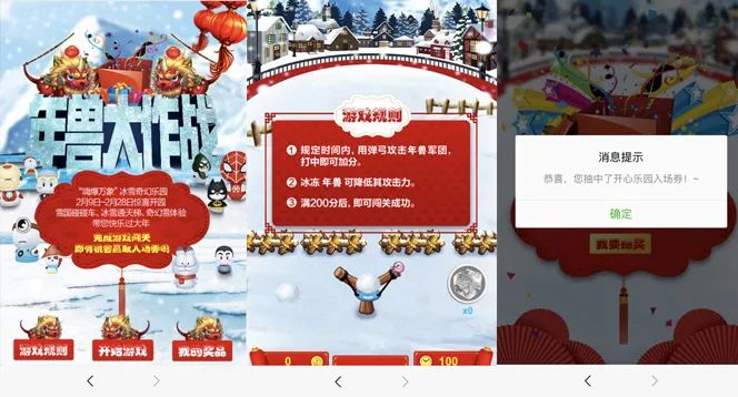 3、冰凍年獸可降低其攻擊力,滿x分闖關(guān)成功可抽獎